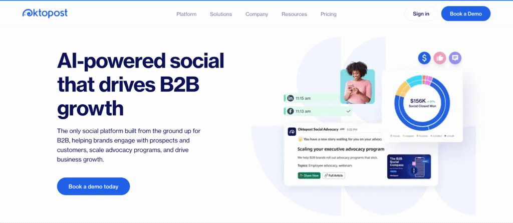 Oktopost is purpose-built for B2B companies that want to tie social media activity directly to leads, pipeline, and revenue. Instead of focusing on traditional engagement metrics, Oktopost leans heavily into attribution, showing marketing teams how social interactions contribute to actual business outcomes. For brands with long sales cycles, SDR workflows, or account-based strategies, Oktopost offers the visibility that general social tools can’t provide.
