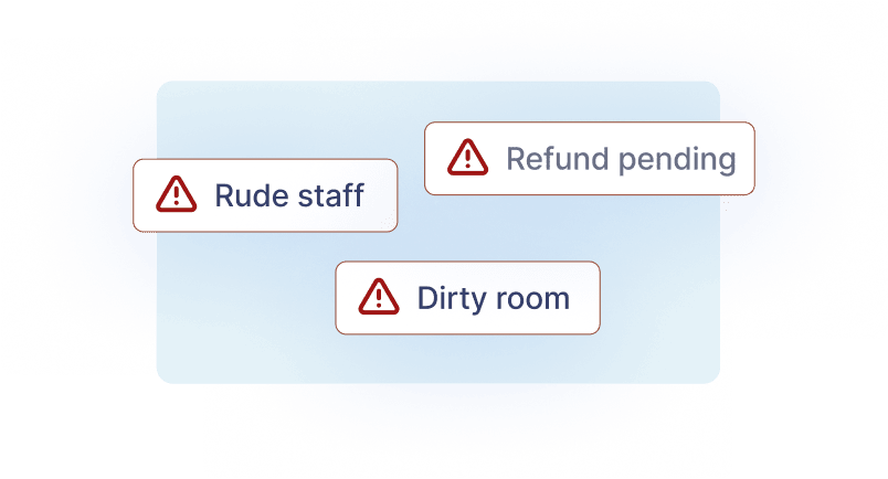 Set up custom alerts for keywords like “rude staff”, “dirty room”, or “refund pending”. Respond before it escalates into a PR issue.